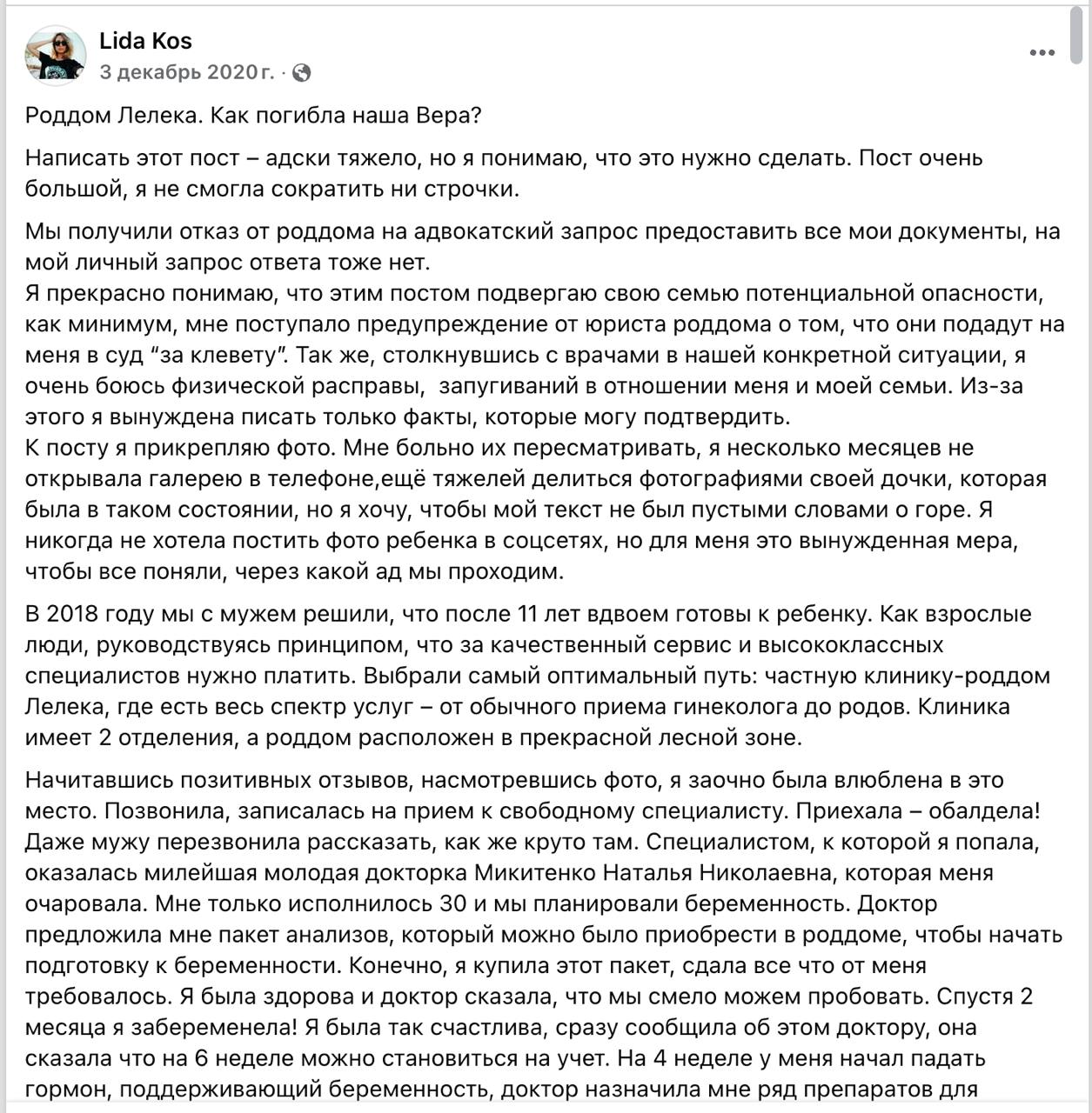 Жінка уточнювала, що сталося це у пологовому будинку Лелека.