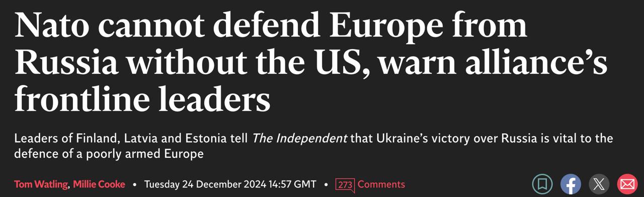 16.10 НАТО не готове протистояти Росії без США, а європейські країни знаходяться на межі можливостей, заявили The Independent лідери трьох прифронтових країн Альянсу - Латвії, Естонії та Фінляндії.