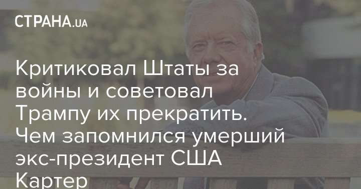 Екс-президент Сполучених Штатів Джиммі Картер, який помер учора, критикував США за постійні війни і радив Дональду Трампу їх припинити.
