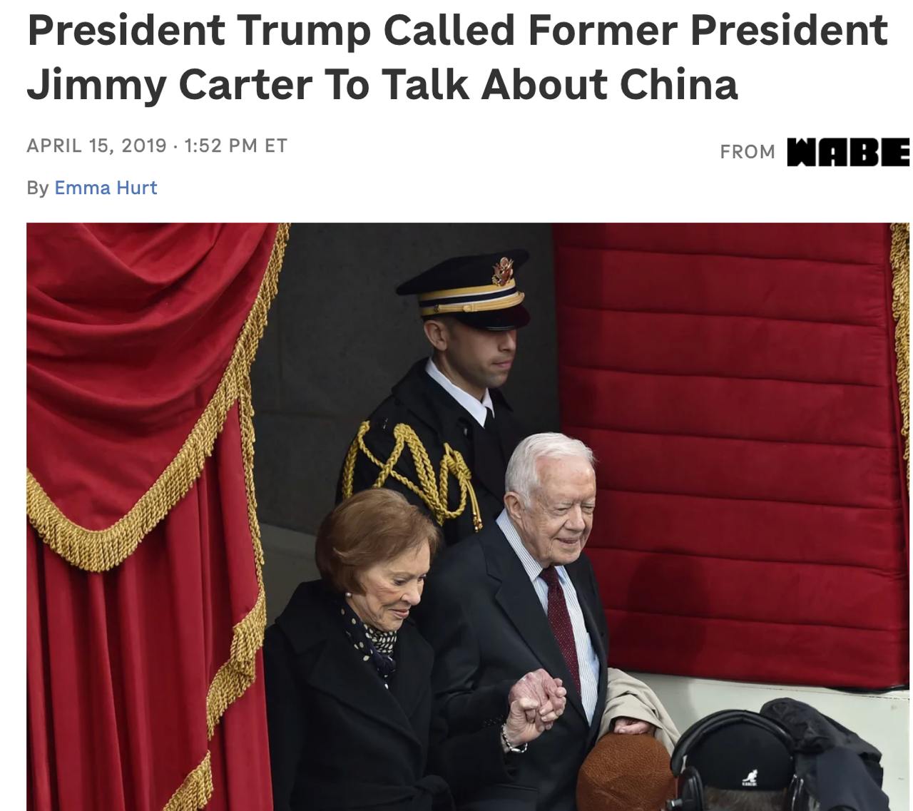 Картер, який свого часу був ініціатором розрядки між Америкою та Китаєм, у 2019 році написав листа президенту Трампу, в якому виклав свій погляд на китайську проблематику (Трамп на той час використовував жорстку антикитайську риторику).