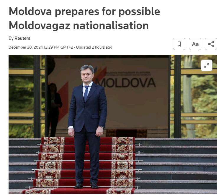 У Молдові хочуть націоналізувати активи компанії "Молдовагаз", контрольний пакет якої 50% належить російському "Газпрому". Прем'єр-міністр країни Дорін Речан наказав підготувати для цього законодавчу базу.