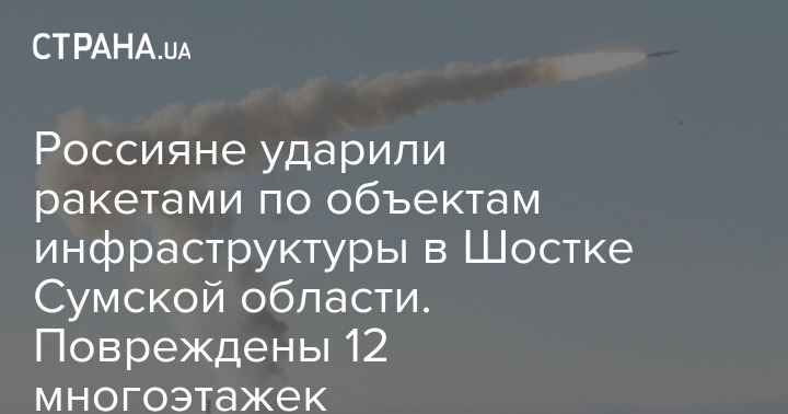 Сьогодні росіяни вдарили ракетами по місту Шостка на Сумщині. Внаслідок обстрілу зруйновано об'єкти інфраструктури.