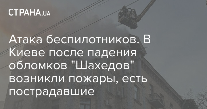 Атака безпілотників. У Києві після падіння уламків "Шахедів" виникли пожежі, є постраждалі