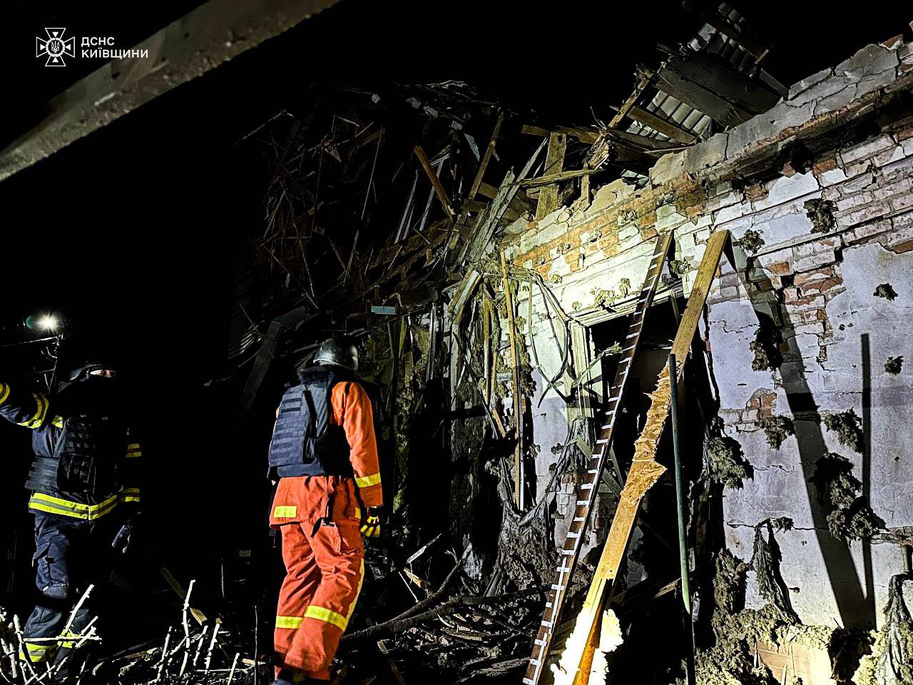 Наслідки російської атаки у Київській області. Фото: ДСНС