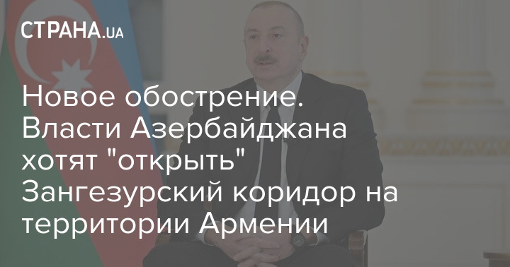 Президент Азербайджану Ільхам Алієв заявив про намір "відкрити" Зангезурський коридор, що пролягає на території Вірменії.
