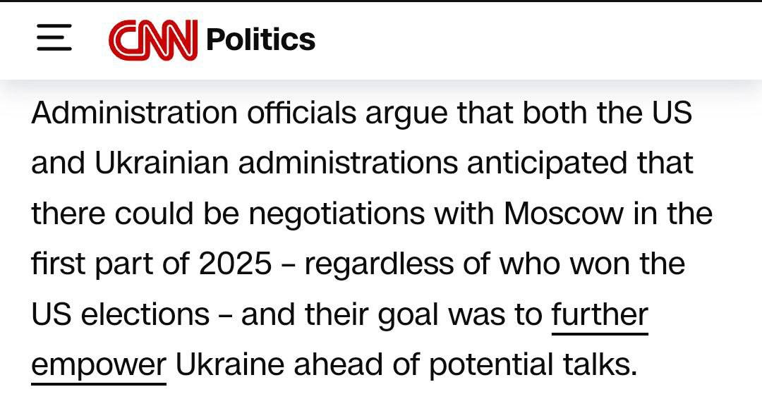 "Чиновники адміністрації (Байдена – Ред.) стверджують, що і адміністрація США, і адміністрація України очікували, що переговори з Москвою можуть відбутися у першій половині 2025 року – незалежно від того, хто переможе на виборах у США", - повідомляє телеканал.