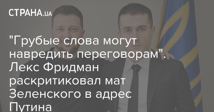 Американський подкастер Лекс Фрідман розкритикував Володимира Зеленського за матюки на адресу Володимира Путіна під час тригодинного інтерв'ю з ним.