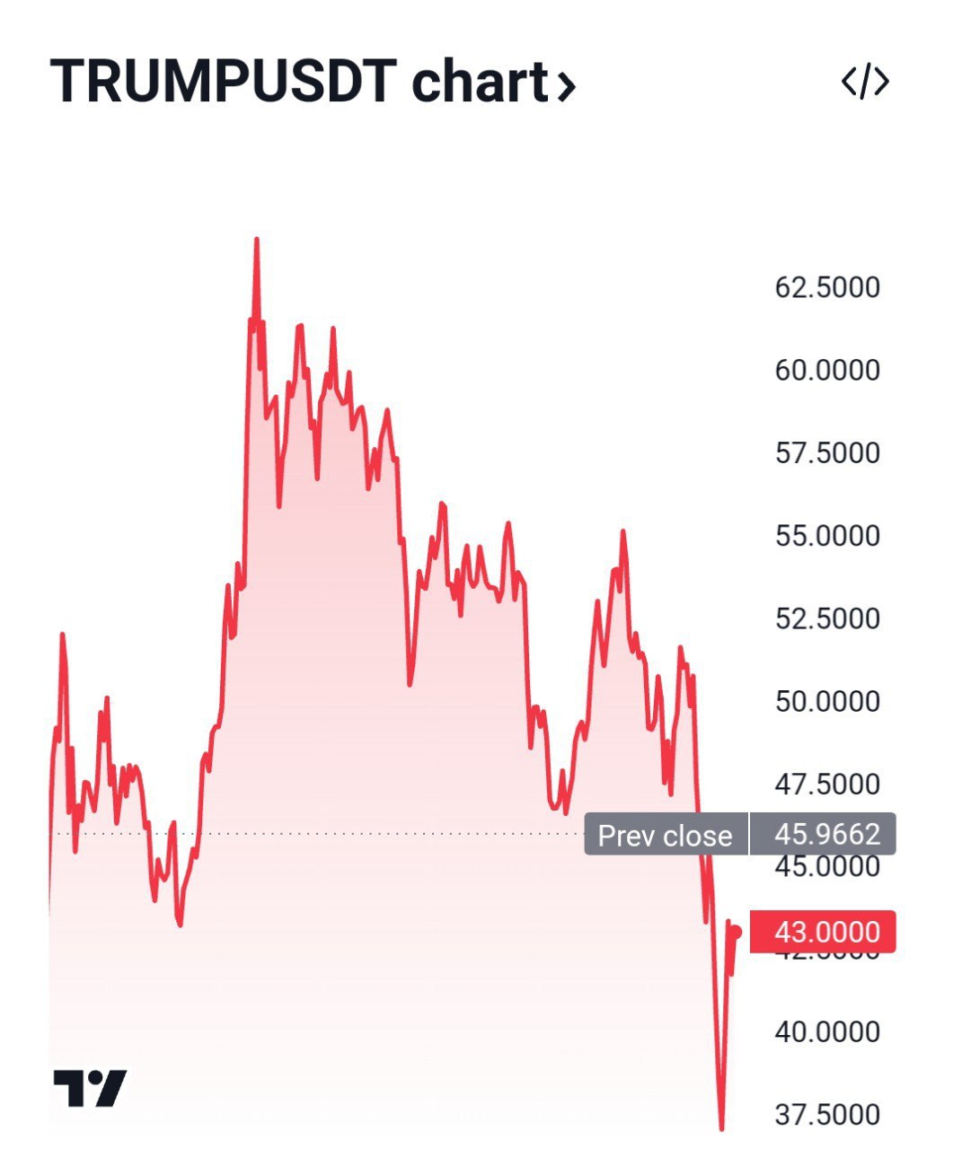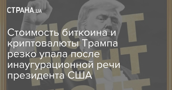 Трампкоїн впав на 40%, а біткоїн до 100 00 доларів на інавгураційній промові президента США Дональда Трампа, в якій той ні слова не сказав про криптовалюти.