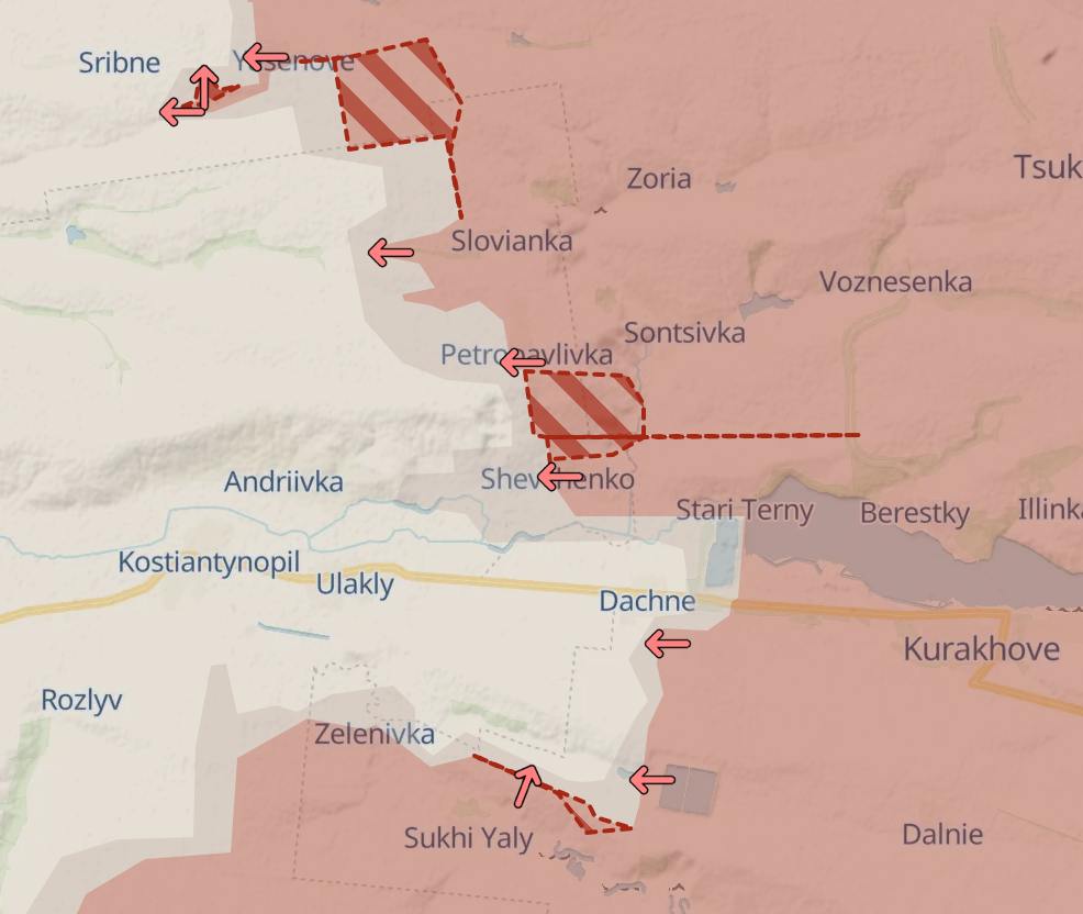 Крім того, росіяни в районі Воздвиженки та Баранівки (на схід від Мирнограда) майже перерізали трасу Покровськ-Костянтинівка – до неї залишилося менше кілометра.