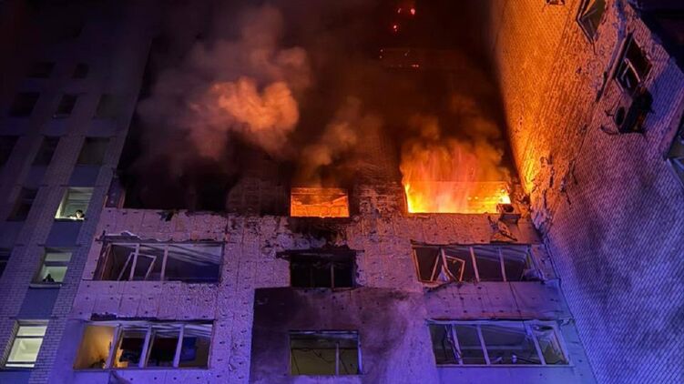 У Фастівському районі внаслідок попадання уламків БПЛА до 10-поверхового житлового будинку. Відбулася пожежа та руйнація на 6-7 поверхах. Евакуйовано 150 мешканців. Загинув чоловік 1988 р.н.