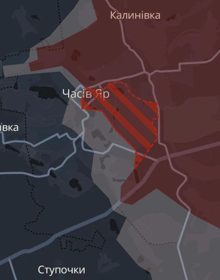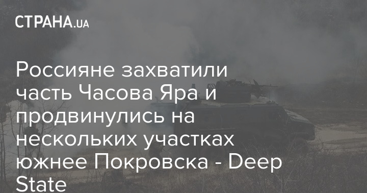 У російських військ велике просування у південній частині Часового Яру. Про це свідчить мапа українського військового пабліка Deep State.
