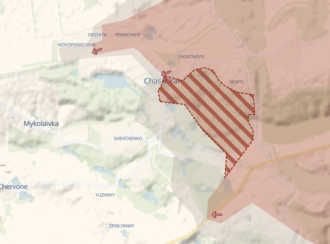 У російських військ великий поступ у південній частині Часового Яру. Про це свідчить мапа українського військового паблика Deep State.