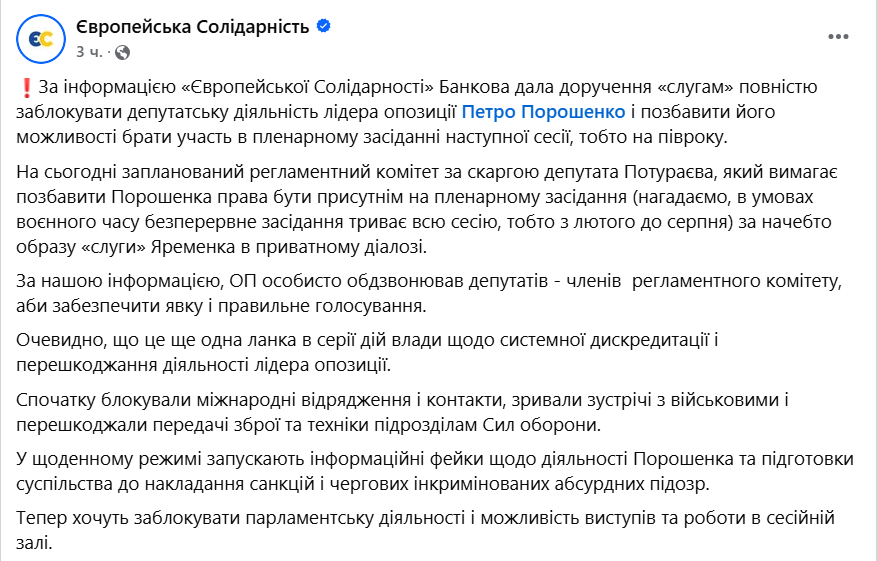 Колишнього президента України Петра Порошенка хочуть усунути від пленарних засідань Верховної Ради на півроку.