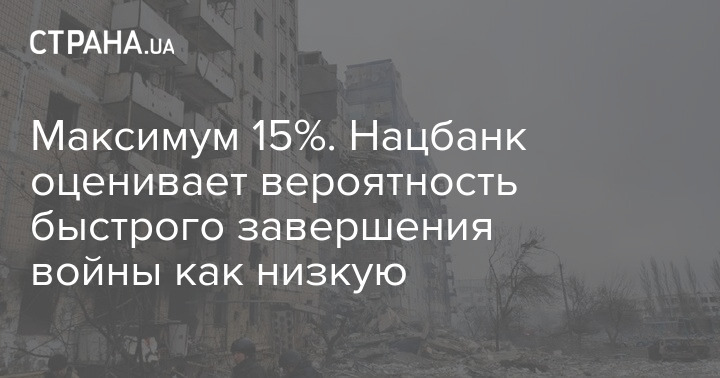 Національний банк оцінює можливість швидкого завершення війни як низьку - максимум 15%. Про це йдеться у "Інфляційному звіті" за січень.