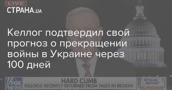 Спецпредставник президента США Дональда Трампа щодо України Кіт Келлог підтвердив свій прогноз про припинення війни в Україні через 100 днів.