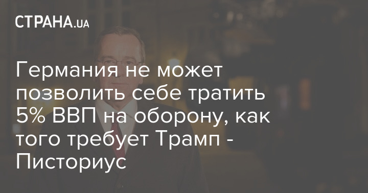 "5% нашого ВВП відповідали б 42% федерального бюджету, це майже кожен другий євро, який витрачає уряд €230 млрд. Ми не можемо це собі дозволити і не можемо витрачати стільки", - заявив Пісторіус.