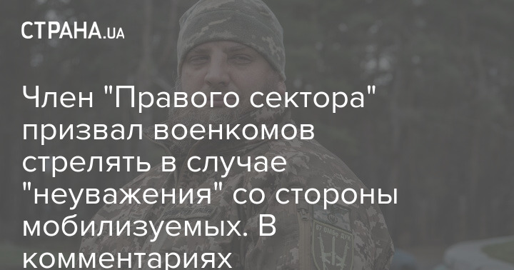Член Добровольчого українського корпусу "Правий сектор" Борис Овчаров ("Дончанин") закликав військкомів стріляти "без попередження" у разі "неповаги" з боку мобілізованих.