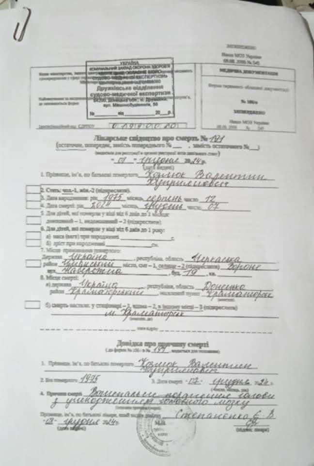 Уточнюється і те, що після вбивства Тесленко та Кауса взяли під арешт і вручили підозру у вбивстві. Смерть Валентина Козлюка офіційно підтвердила Жашківська територіальна громада, звідки родом військовий.