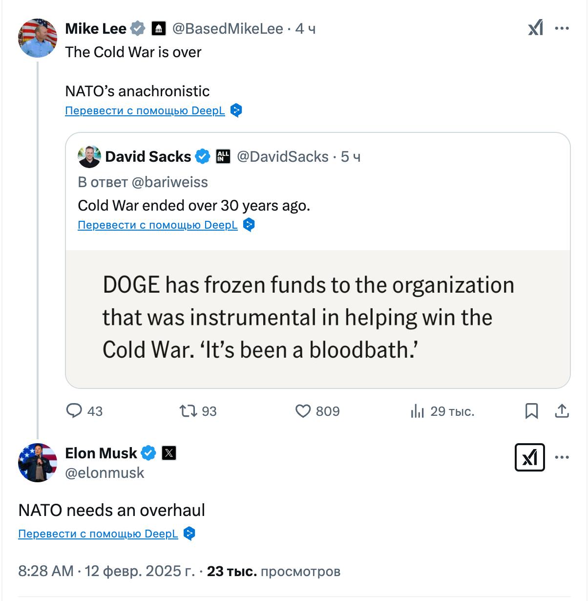 Лі опублікував пост про те, що НАТО - це анахронізм, а епоха холодної війни закінчилася.