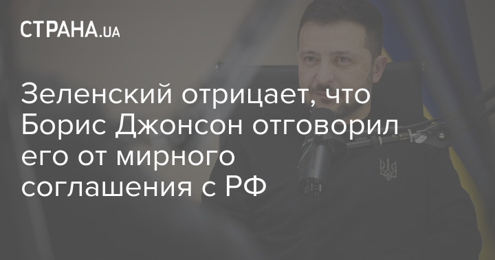 Президент України Володимир Зеленський заперечує заяви про те, що Борис Джонсон, будучи прем'єр-міністром Великобританії, відмовив його укласти мирну угоду з РФ навесні 2022 року.
