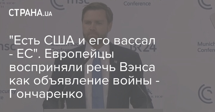 Венс показав ЄС, що той васал Вашингтона, вважає Гончаренко. Скріншот