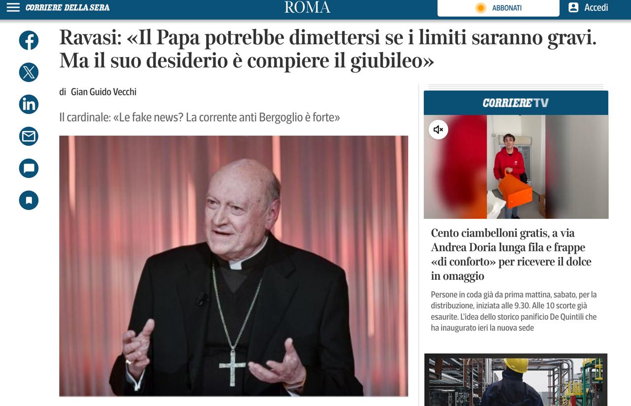 Про це повідомив кардинал Джанфранко Равазі в інтерв'ю Corriere della Sera.
