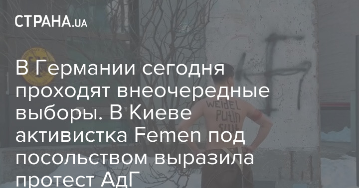 У Німеччині сьогодні відбуваються позачергові вибори. У Києві активістка Femen під посольством висловила протест АдГ