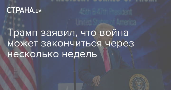 Трамп заявив, що війна може закінчитися за кілька тижнів