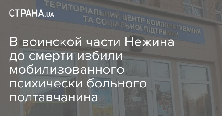Черговий інцидент із загибеллю мобілізованого стався у військовій частині північної України, де психічно хворого полтавця жорстоко побили до смерті.