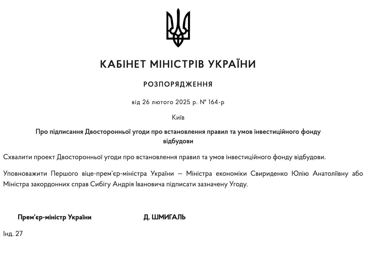 Кабмін називає його угодою "Про встановлення правил та умов інвестиційного фонду відновлення". Раніше проект договору під такою самою назвою публікували ЗМІ.