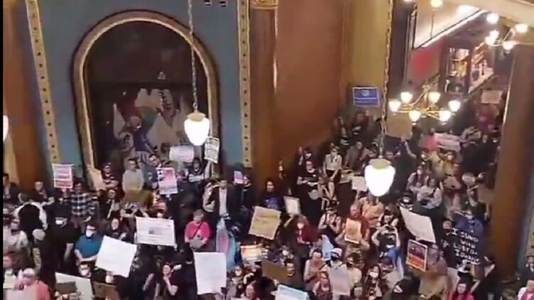 Трансгендери вчора влаштували мітинг у Капітолії американського штату Айова. Фото: скрін з відео