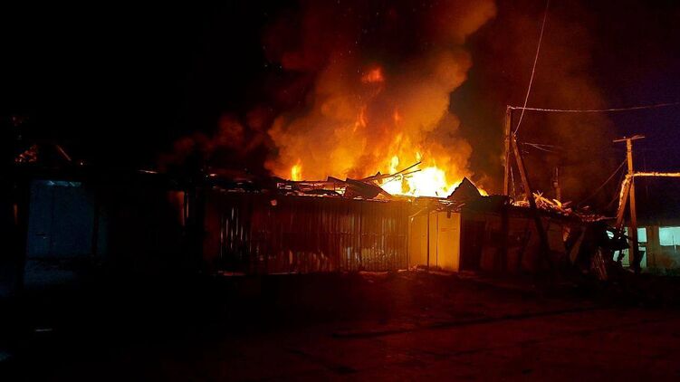 "1:40 8 березня Богодухівський р-н, м. Богодухів. Внаслідок попадання чотирьох БпЛА (типу "Шахед") на території м'ясокомбінату виникла пожежа та пошкоджено виробничі цехи, гаражі", - написав Синегубов.