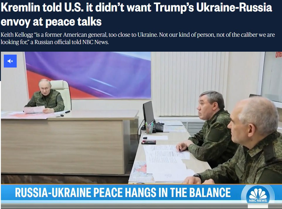 Видання зазначає, що генерал-лейтенант у відставці Келлог підозріло був відсутній на двох нещодавніх зустрічах у Саудівській Аравії. Президент Росії Володимир Путін вважав, що він надто проукраїнсько налаштований, повідомив NBC News високопосадовець.