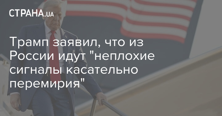 Президент США Дональд Трамп заявив, що "з Росії йдуть непогані сигнали щодо перемир'я з Україною". Про це він заявив журналістам на військовій базі Ендрюс в американському штаті Меріленд.