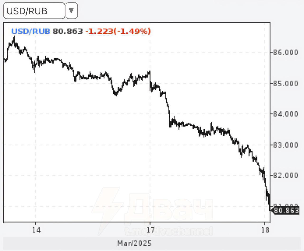 Курс російського рубля до долара зміцнився майже 80 рублів. Так сильно рубль не зміцнювався з квітня 2023 року (ще наприкінці минулого року його курс падав до 110 за долар).