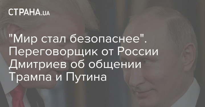 Глава Російського фонду прямих інвестицій Кирило Дмитрієв, якого вважають близьким до Путіна, заявив, що світ став безпечнішим завдяки президентам РФ і США.