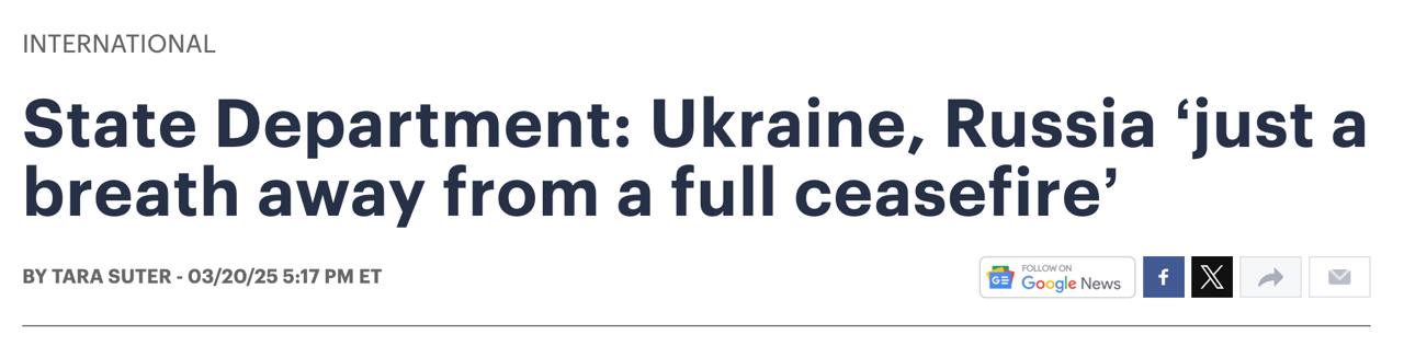09:12 Україна та Росія "за крок" від припинення бойових дій, заявляє Держдеп.