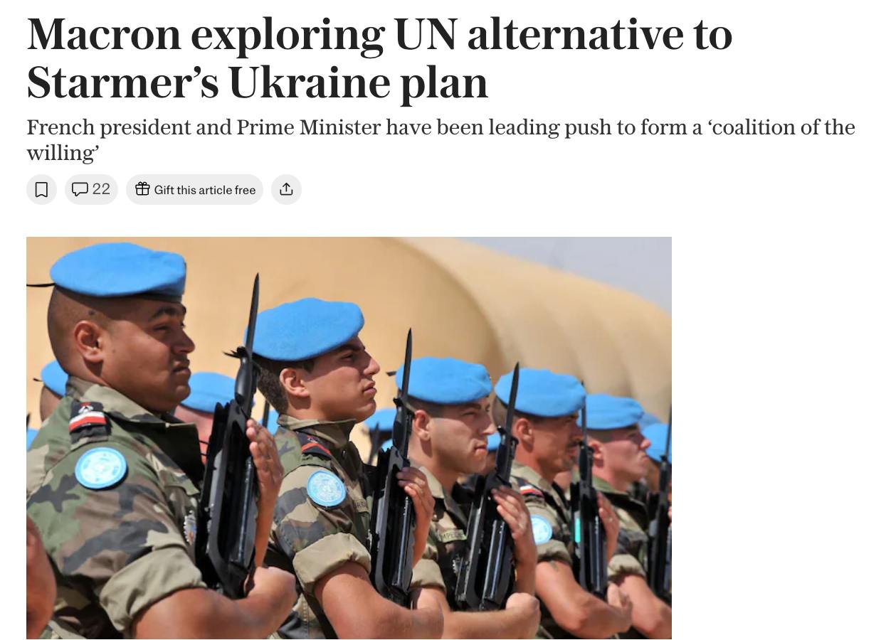 За даними видання, президент Франції Еммануель Макрон розглядає можливість створення миротворчої місії для України під егідою ООН.