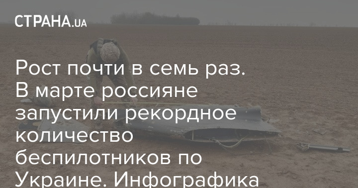 Зростання майже в сім разів. У березні росіяни запустили рекордну кількість безпілотників Україною. Інфографіка