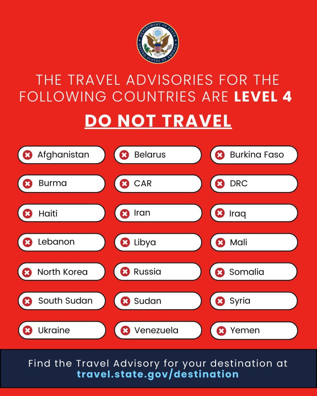Держдепартамент США 1 квітня оновив попередження для американців про небезпеку подорожей до деяких країн.