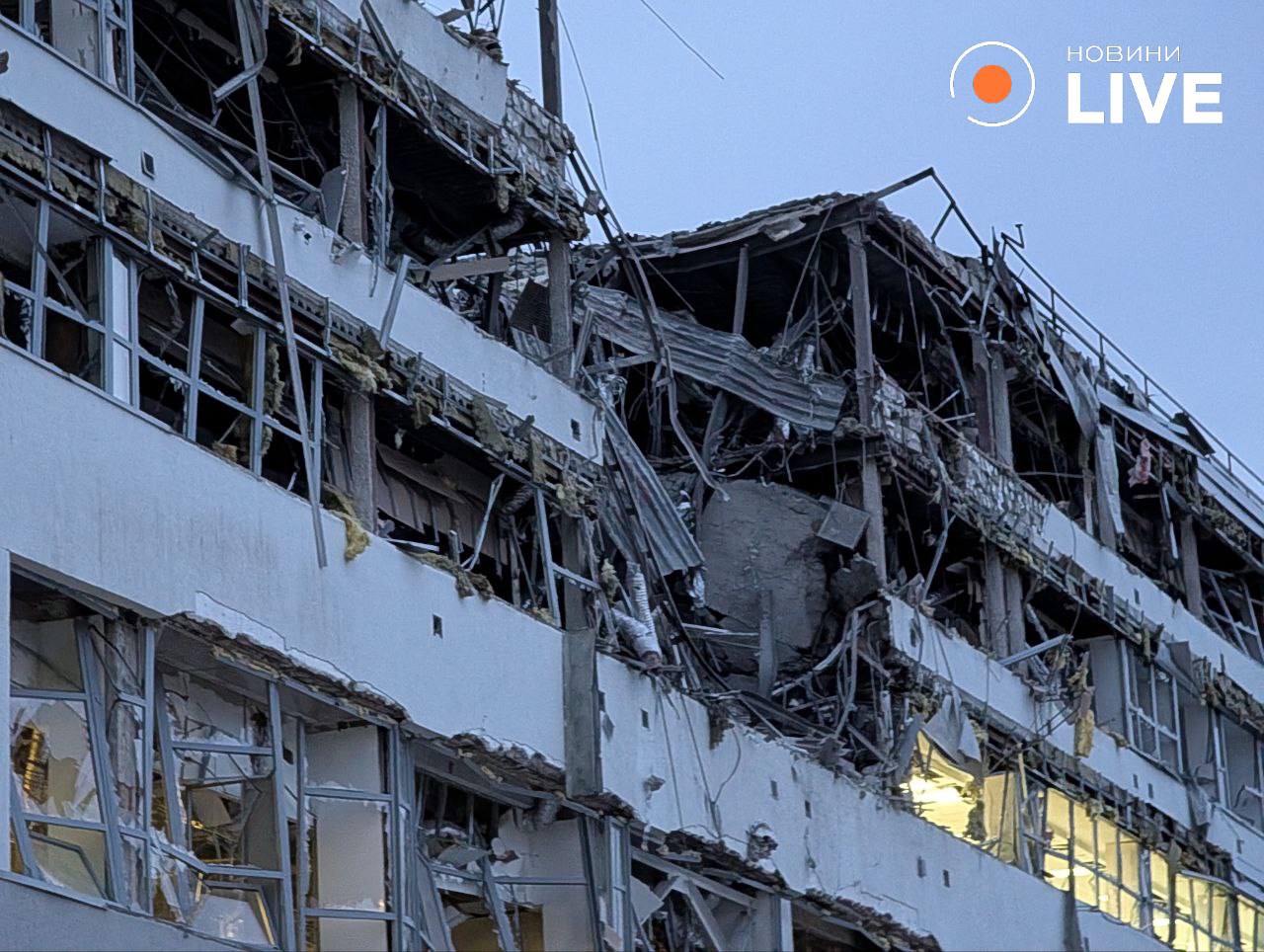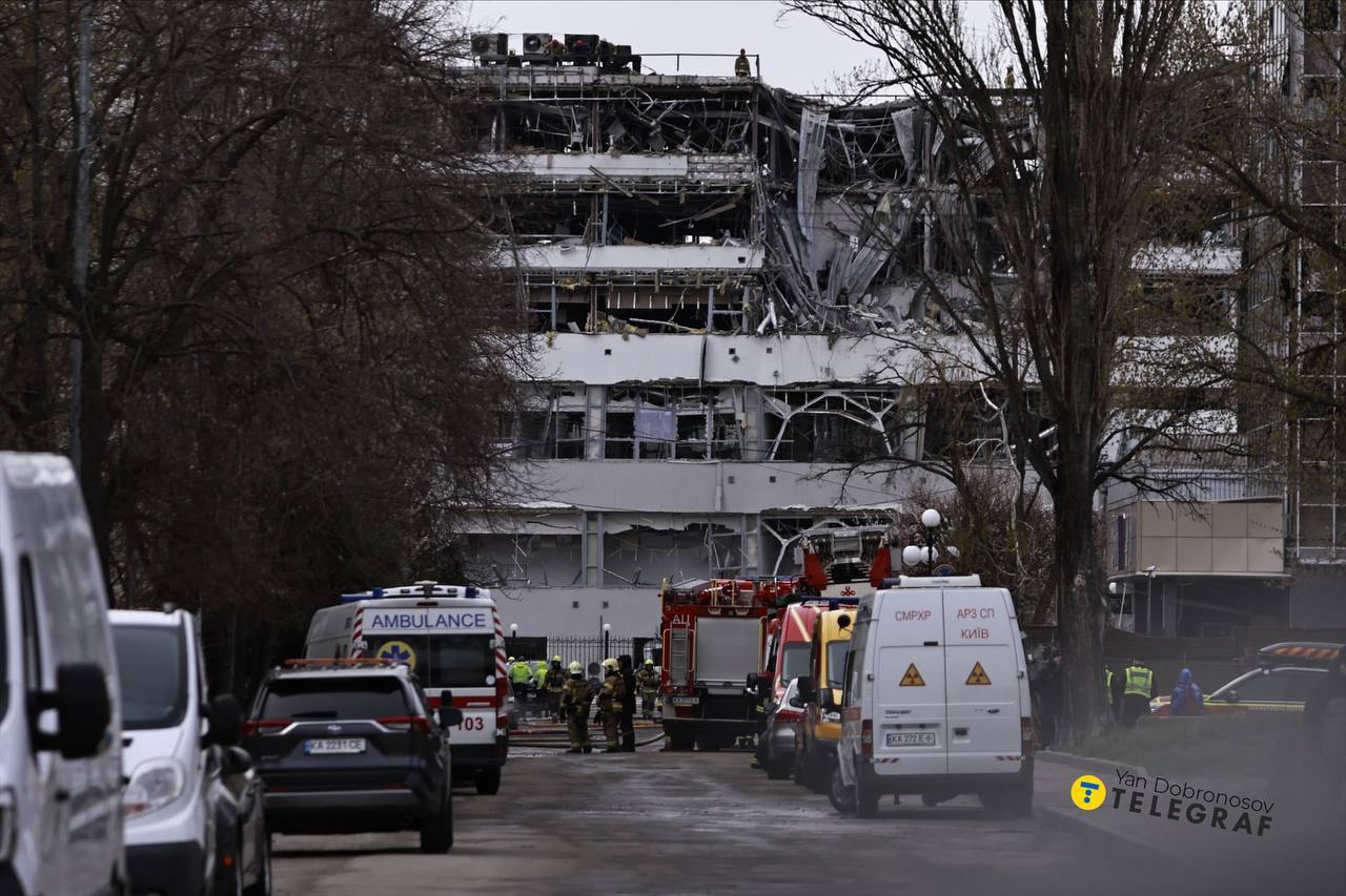 13:54 У пошкодженій сьогоднішнім ракетним ударом офісній будівлі в Києві працювали канали українського державного мовлення.
