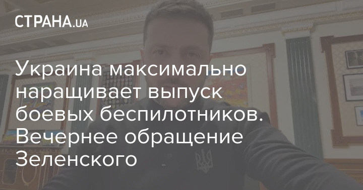 Україна максимально збільшує випуск бойових безпілотників. Вечірнє звернення Зеленського