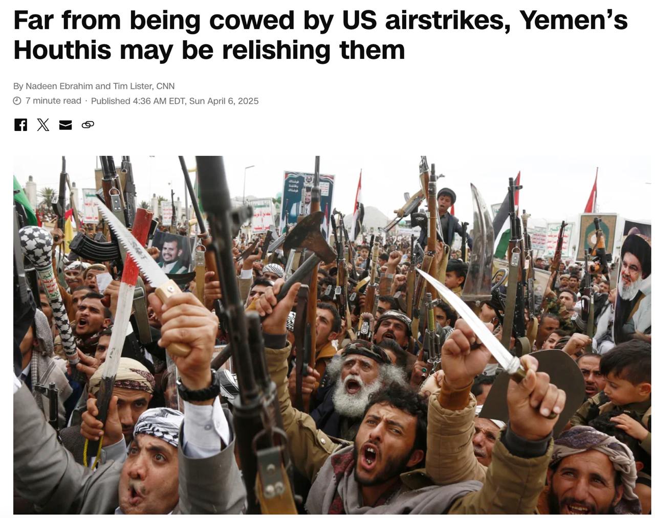 "Немає жодних сумнівів у тому, що кампанія США послабила можливості хуситів. Але історія показує, що хусити мають надзвичайно високу терпимість до болю. І рішучість адміністрації Трампа викорінити загрозу, яку вони становлять, може зрештою вимагати наземного наступу", - йдеться у статті.