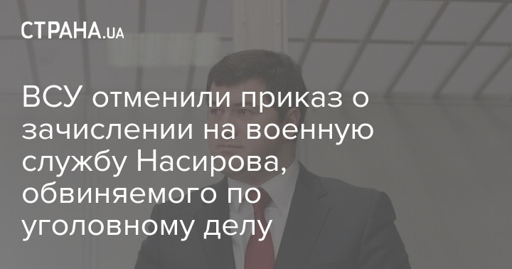 ЗСУ скасували наказ про зарахування на військову службу екс-глави фіскальної служби Романа Насірова, який зараз проходить обвинуваченим у кримінальній справі.