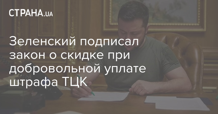 Президент України Володимир Зеленський підписав закон про знижку у 50% за добровільної сплати штрафу ТЦК.