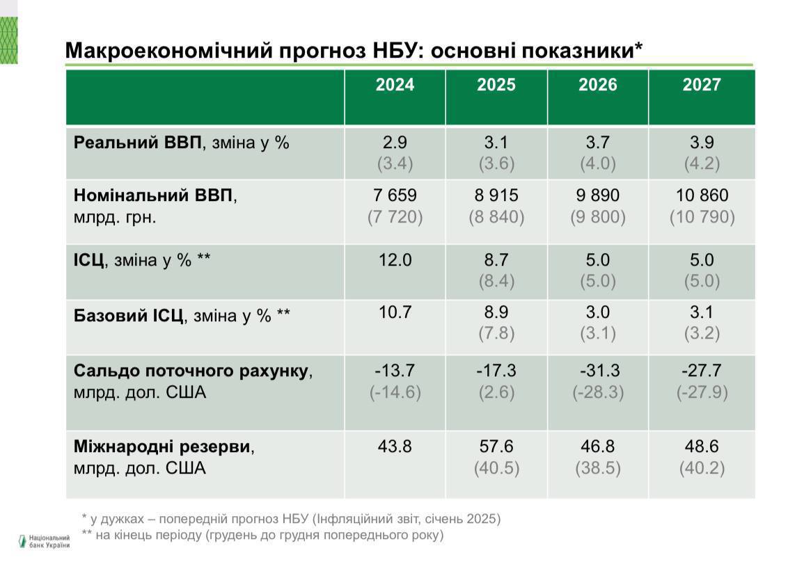 Голова Національного банку України Андрій Пишний заявив про погіршення прогнозу регулятора щодо зростання ВВП на поточний рік до 3,1%. У попередньому показнику його рівень становив 3,6%.