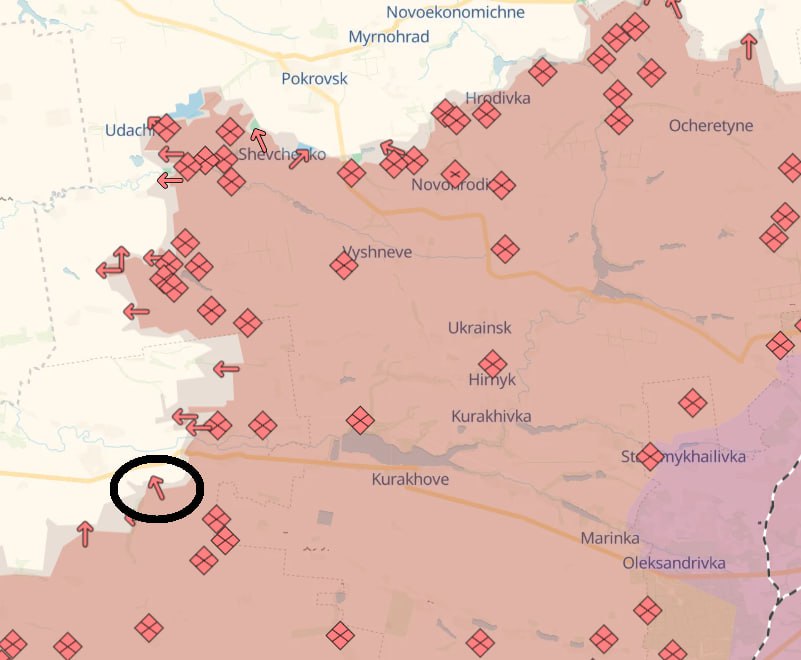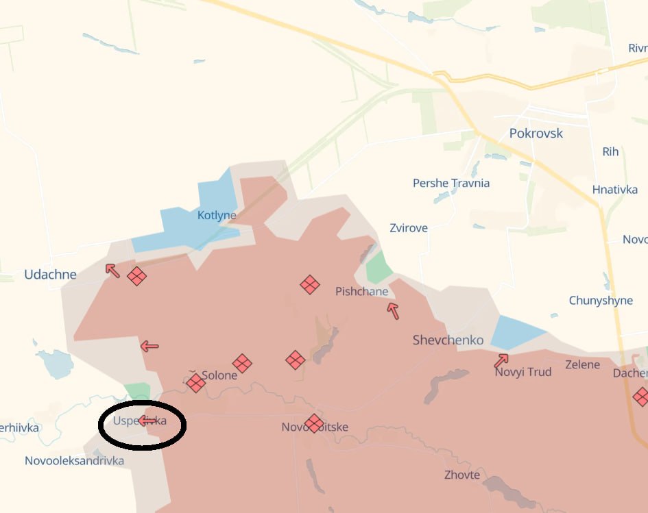 19:47 Армія РФ просунулась біля Білогорівки (Луганська область), Розливу (на південний захід від Покровська) та в Успенівці (на захід від Покровська).