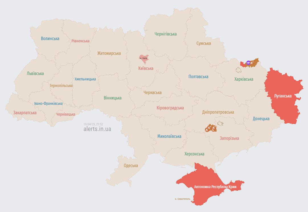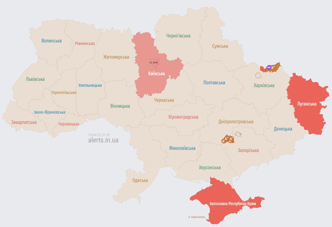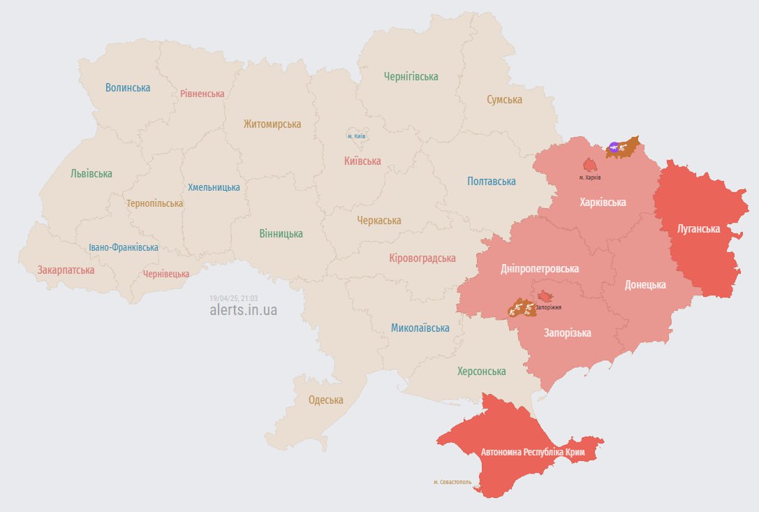 21:10 У чотирьох областях оголосили тривогу через балістичну загрозу.