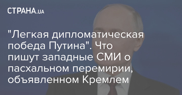 "Легка дипломатична перемога Путіна". Що пишуть західні ЗМІ про великоднє перемир'я, оголошене Кремлем