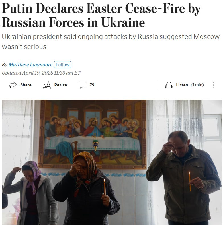 Тим часом, газета The New York Times вважає, що Росія продемонструвала відкритість до переговорів, оголосивши великоднє перемир'я.